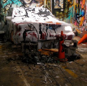 2006 – Rabbatman – Wood, Wire, Burlap, Plaster, Spraypaint I stayed up for 3 days during the time that I made Rabbatman working on paintings and drawings at the same time. I didnt finish it in time and missed the deadline by a nights work. I went home physically, mentally and emotionally drained, smoked a cigarette and broke down on my apartment living room couch in front of my room mate Tom Taylor. He sat with me as I cried my eyes out mainly because I failed myself. He brought me back to reality. I hugged him then went back to the studio and finished the piece. When I left I saw the rabbits in the grass by the Iowa river, and the bats flying overhead as I had for the previous 3 nights. I walked home slowly and went to sleep for a very long time. Shortly thereafter I discovered I had a hernia! _____________________________________________________________________________________ [caption id=u0022attachment_87u0022 align=u0022aligncenteru0022 width=u0022640u0022 caption=u00222007 - u0022Relyzu0022 - Litho Stone (Stage 1)u0022][/caption] Above is my brief attempt at Lithography. The faces come from my friends, old National Geographics and other random photos that I connected with on some level. I enjoyed drawing on the…