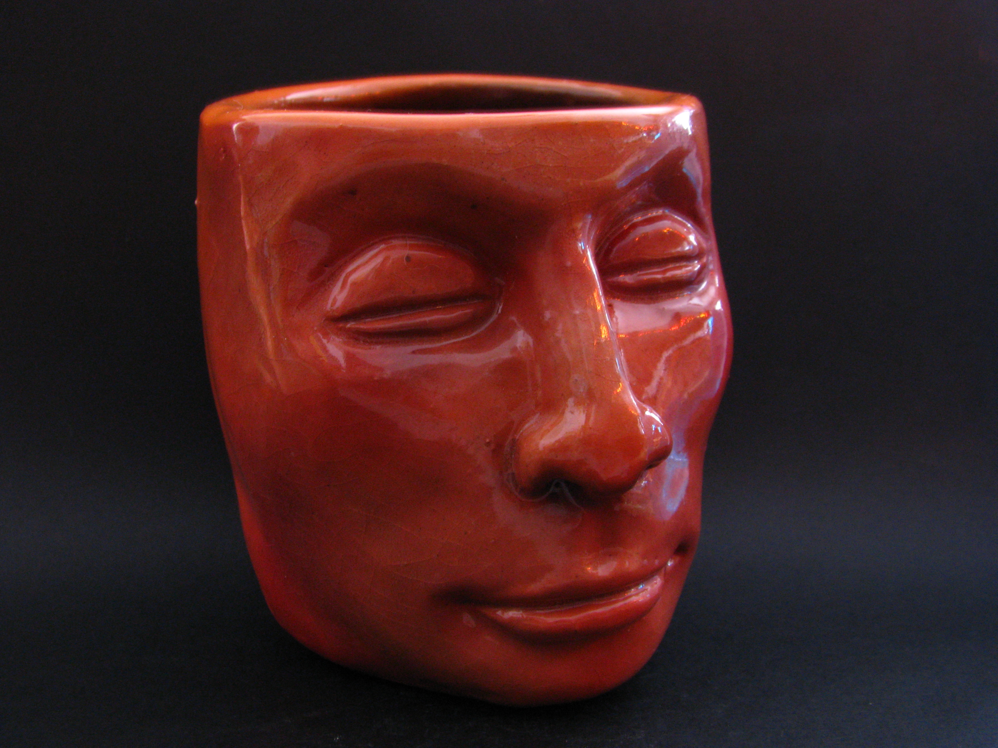 I love “Avatar The Last Air Bender” (the animated series, NOT the movie) because, here is a 100 year old 12 year old, and in order to save the world he has to master all 4 elements: earth, air, water and fire! A ceramic avatar must master these elements also in order to save the world. :) Hey, its possible. St. Seraphim of Sarov once said, “Save yourself and thousands around you will be saved”. ____________________________________________________________________ Winter 2010 – Face-cup series – Terra Cotta and Underglaze Glancing Guy ____________________________________________________________________