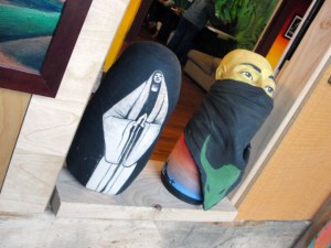 2006 – Rabbatman – Wood, Wire, Burlap, Plaster, Spraypaint I stayed up for 3 days during the time that I made Rabbatman working on paintings and drawings at the same time. I didnt finish it in time and missed the deadline by a nights work. I went home physically, mentally and emotionally drained, smoked a cigarette and broke down on my apartment living room couch in front of my room mate Tom Taylor. He sat with me as I cried my eyes out mainly because I failed myself. He brought me back to reality. I hugged him then went back to the studio and finished the piece. When I left I saw the rabbits in the grass by the Iowa river, and the bats flying overhead as I had for the previous 3 nights. I walked home slowly and went to sleep for a very long time. Shortly thereafter I discovered I had a hernia! _____________________________________________________________________________________ [caption id=u0022attachment_87u0022 align=u0022aligncenteru0022 width=u0022640u0022 caption=u00222007 - u0022Relyzu0022 - Litho Stone (Stage 1)u0022][/caption] Above is my brief attempt at Lithography. The faces come from my friends, old National Geographics and other random photos that I connected with on some level. I enjoyed drawing on the…