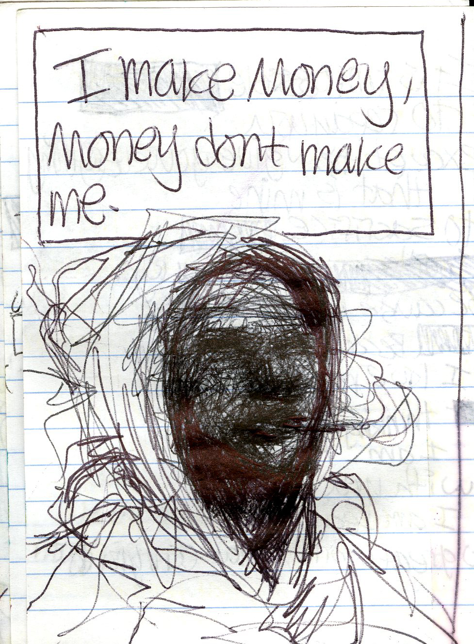 2008 – I make $, $ dont make me – ballpoint pen (in a different notebook but around the same time)