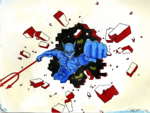 6 – Blue Devil Mural Sketch – Colored Pencil and Ink
