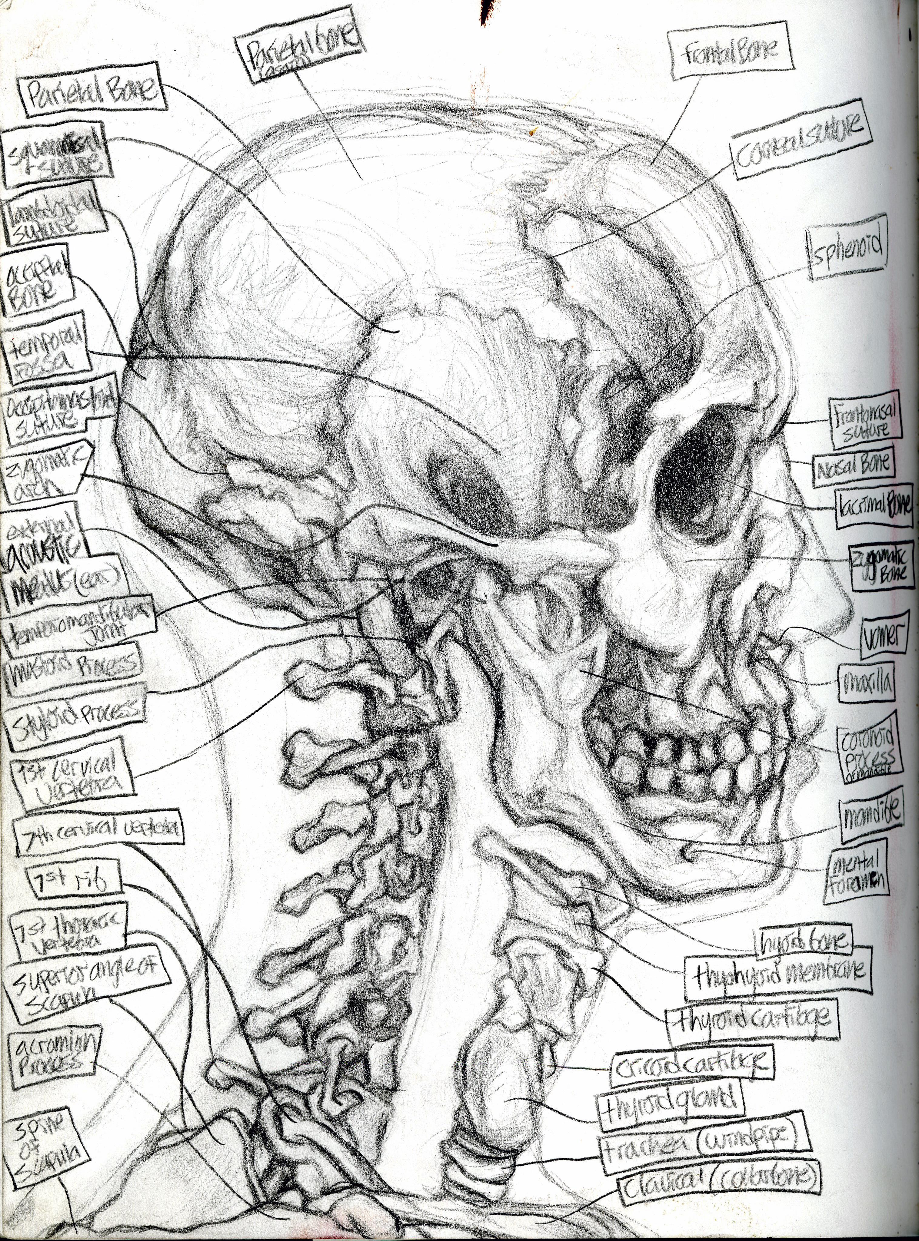 (Sketchbook 2005-7) – Muscles – Skull and Skeleton Study – Graphite