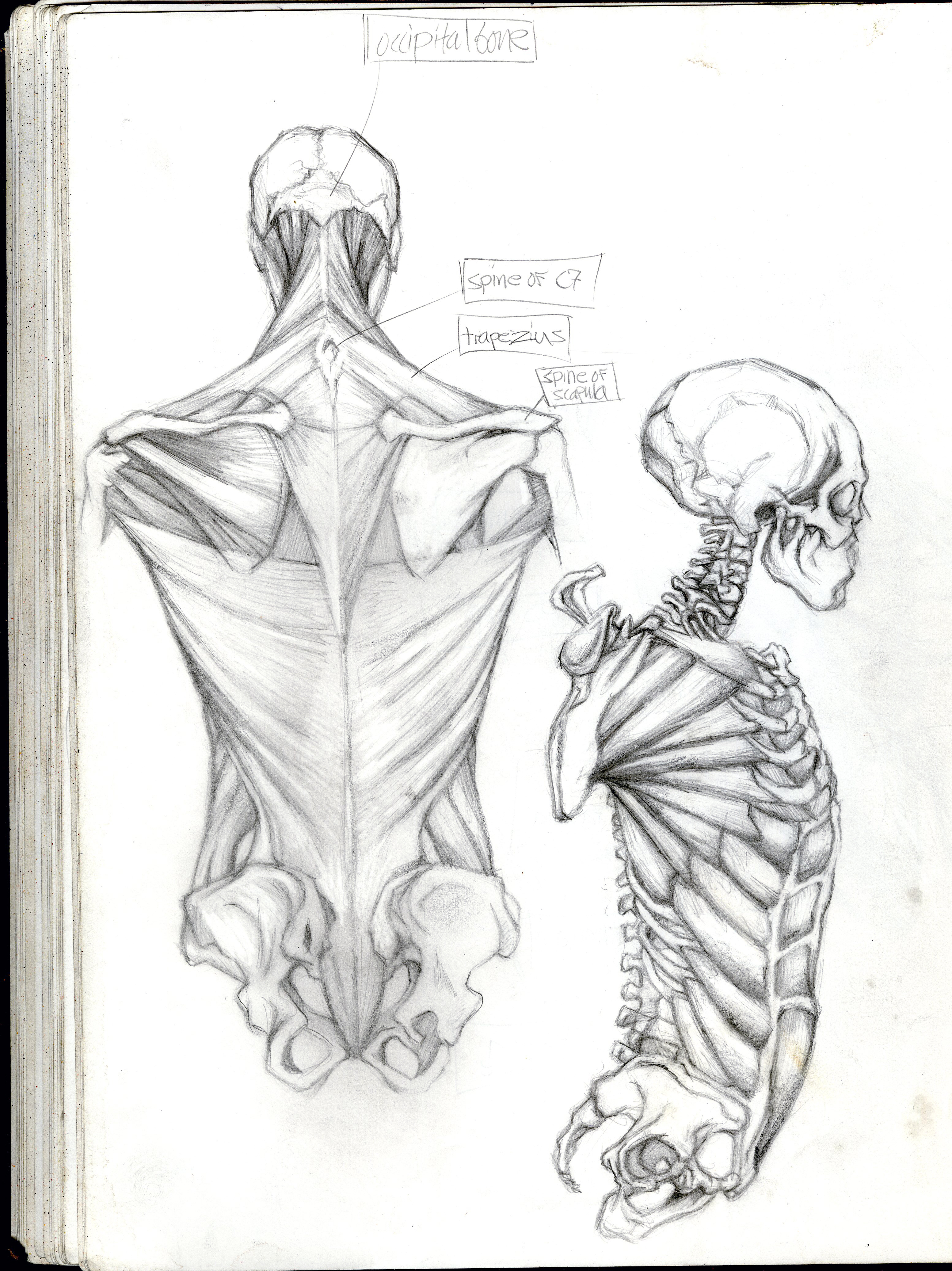 (Sketchbook 2005-7) – Muscular Skeletal System – Back and Side – Graphite