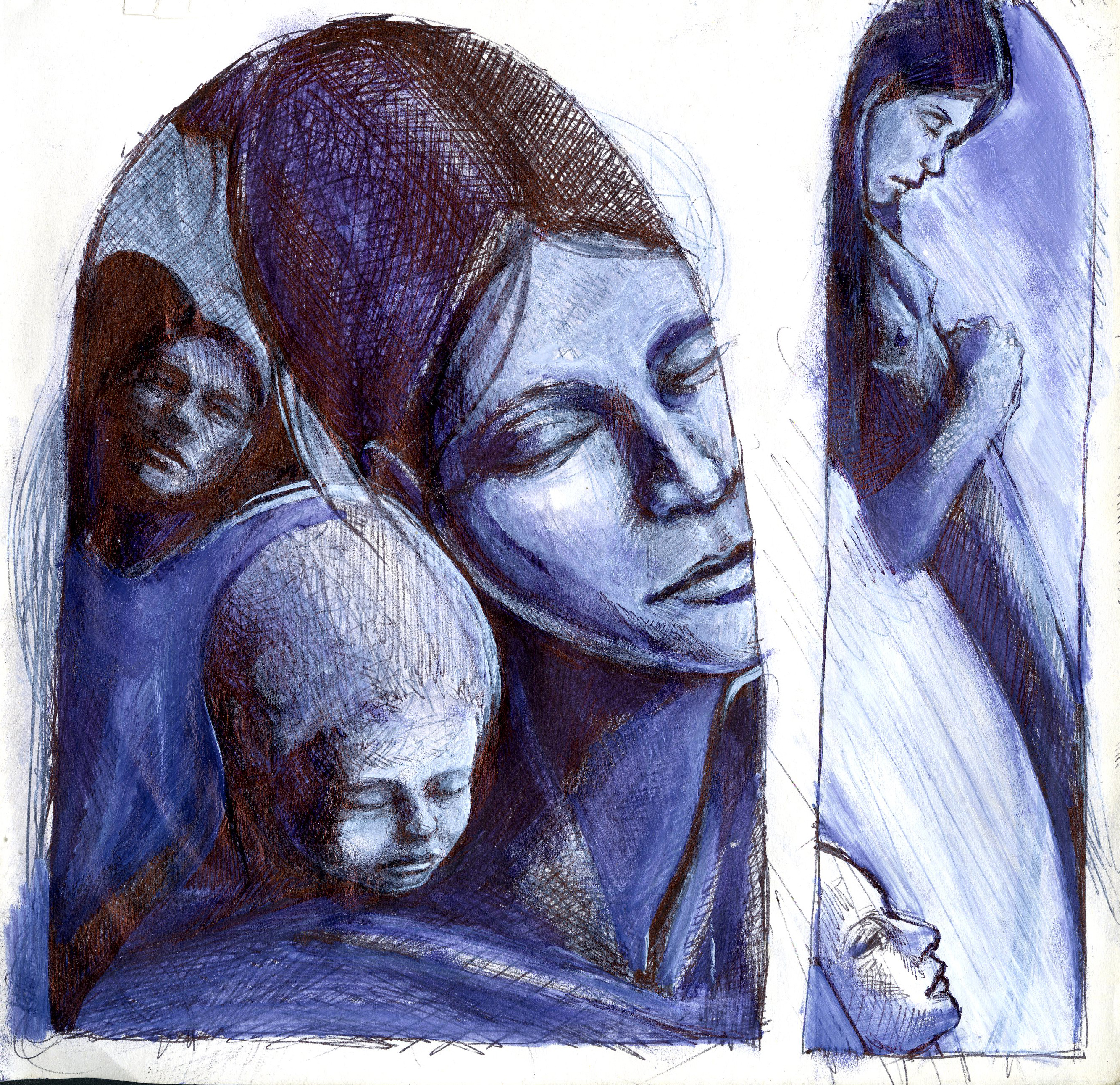 2010 – Family Sketch (Left) & Floating On the River Sketch (Right) – Ballpoint Pen & Paintmarker